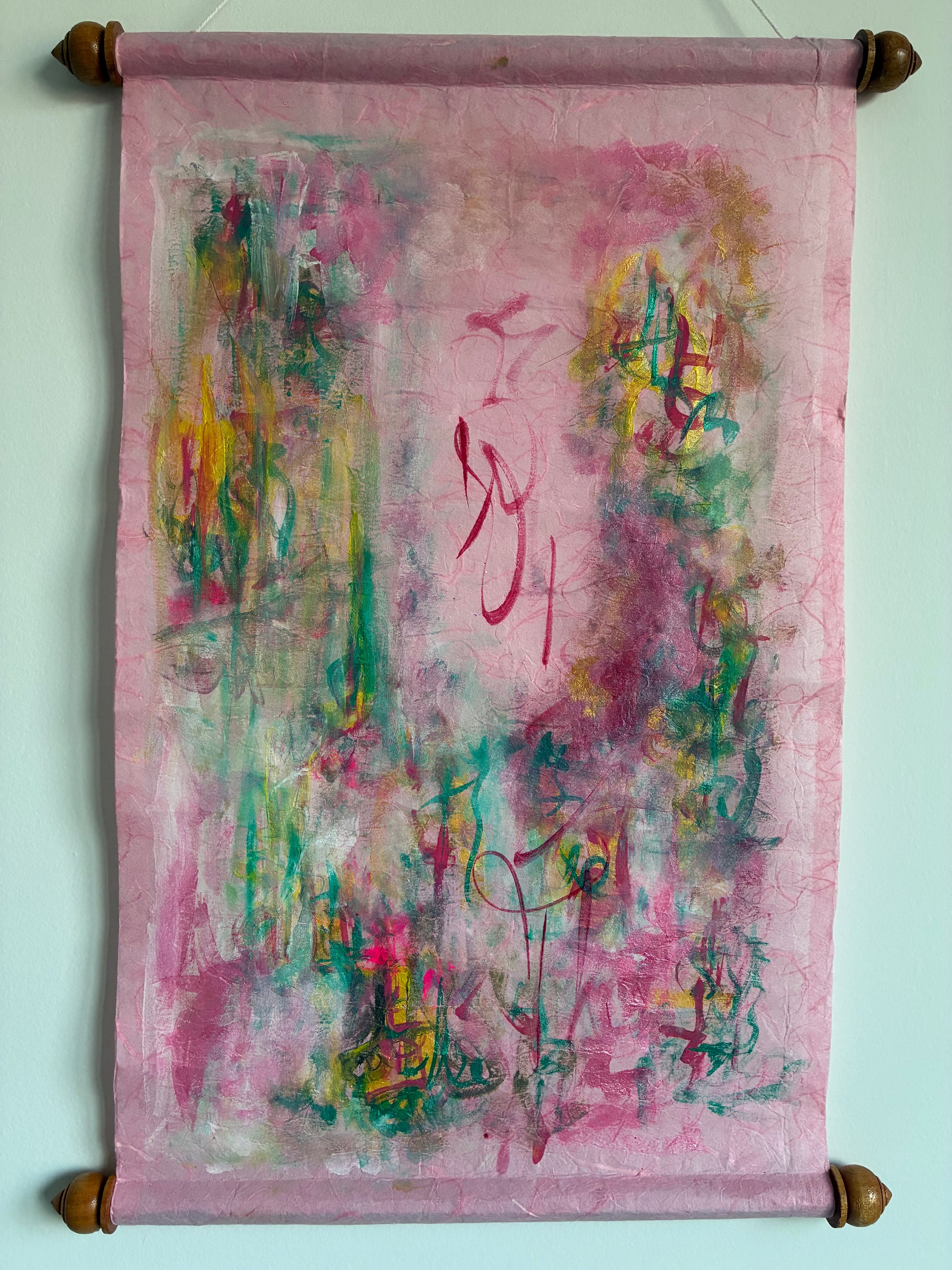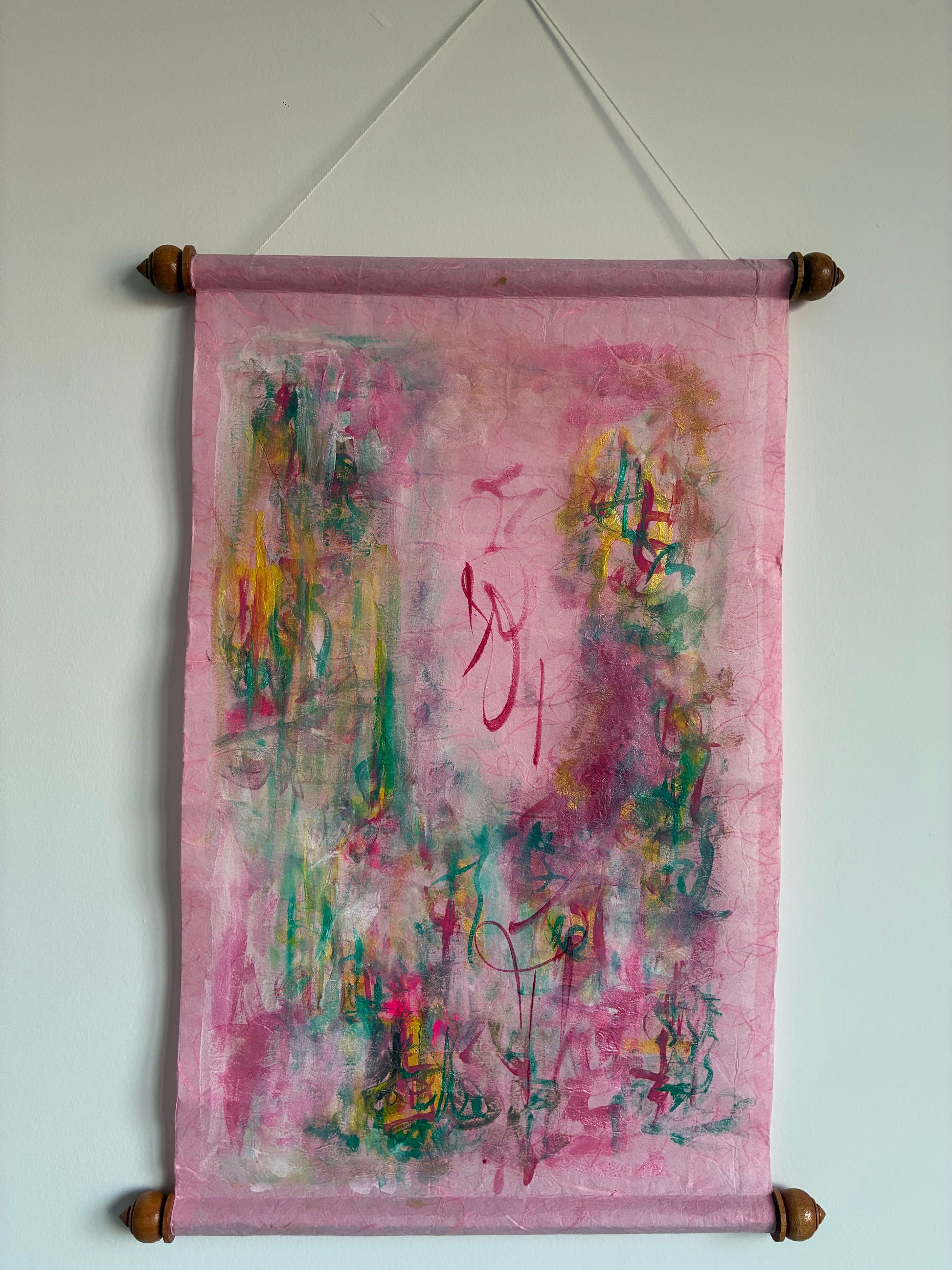 Las obras están realizadas sobre papel Flexi Mulberry, elaborado artesanalmente a partir de la corteza del árbol de morera. Este soporte natural y sostenible, con su textura fibrosa única, aporta resistencia, flexibilidad y variaciones orgánicas que hacen que cada pieza sea irrepetible.